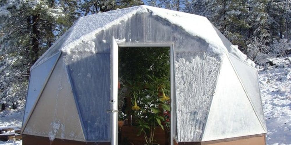 Growing Tropical Flowers in Winter. Congratulations to Gail and Bert Waser from SE Oregon on winning December’s Dome of the Month contest. Wow! They blew us all away with this beautiful photo of their snow-kissed Growing Dome Greenhouse full of tropical flowers. Gail took this photo on November 18th and had the following to add, “A little chilly last night, but the Angel Trumpet, Fushia’s, & tomatoes don’t mind at all!” Really – these greenhouses do grow year-round! This is one of the reasons we do what we do so that people can enjoy a lush garden oasis in the middle of winter. It lifts the spirits like nothing else can when everything outside is white, gray, and brown. Many others agree as Gail and Bert’s photo received over twice as many likes (446) and way more shares (199) than any other photo entered to date. Way to blow away the competition, and what a great way to end the year! We’ve included below a photo taken on the same day of the inside of Gail and Bert’s 18′ Growing Dome.