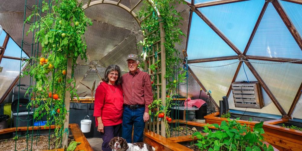 Bob and Kate Garwood’s Growing Dome Greenhouses sit at about 8,200 ft elevation below the picturesque Collegiate Peaks in Buena Vista, Colorado. Their Growing Dome journey, or might we say journeys, began in 2014, not long after Kate’s retirement, when they stumbled upon Growing Spaces at the Chaffee County Garden and Home Show. Kate stated that before retirement, she “was never really a gardener.” It was impossible to find the time in her 60-hour workweek.