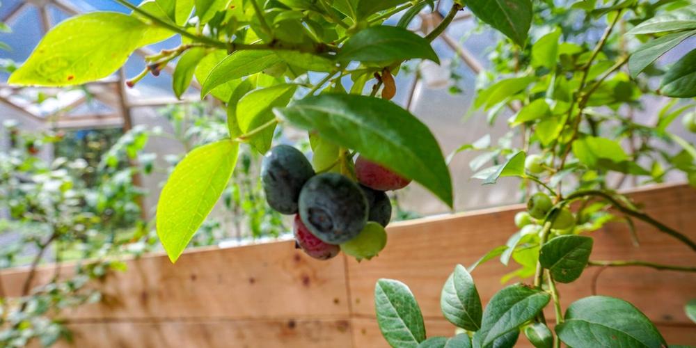 Blueberries: Growing blueberry bushes is relatively easy, but they require a maturation period before fruit production begins. During the first two years, it’s important to remove blossoms to establish the bush. By year three, you can expect a bountiful harvest. Blueberries thrive in full sun and benefit from pine or sawdust mulch, regular watering (1-2″ per week), and well-drained, moisture-retaining soil. Achieve an optimal soil pH of around 4.5 and consider planting multiple varieties together for improved yield. Keep your berries safe from birds by growing them in your Growing Dome greenhouse.