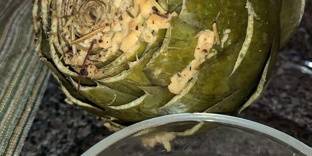 Repeat until you reach the immature leaves. Scrape out the small piney leaves and fuzz-like part of the heart of the globe with a spoon. Then dip the remaining pieces of artichoke heart, including the stem if you like, into the dipping sauce. It can be a fantastic appetizer or an entire entrée.
