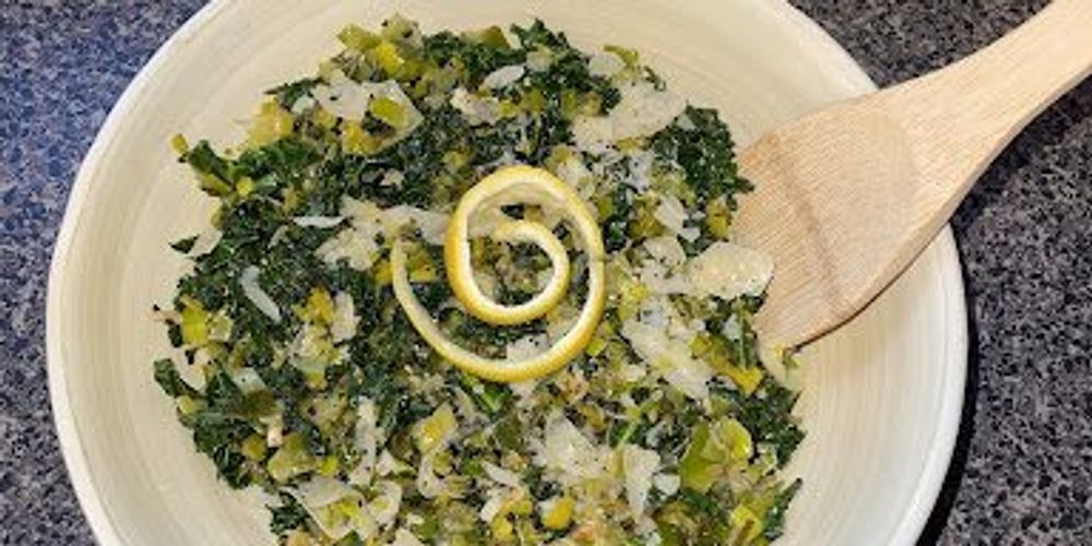 Next up, devein the kale and loosely chop. You will need a large deep skillet. Turn on the stovetop to medium-high heat, melt butter, and sauté the leeks and the garlic until light brown and aromatic, about 8-10 minutes. Steam the kale separately, the steaming will condense the kale. Add kale to the leek mixture, lemon juice, then the shredded parmesan cheese and fresh cracked pepper until coated or your preference. Serve as a side dish to your favorite protein or as a nutrient-packed lunch.