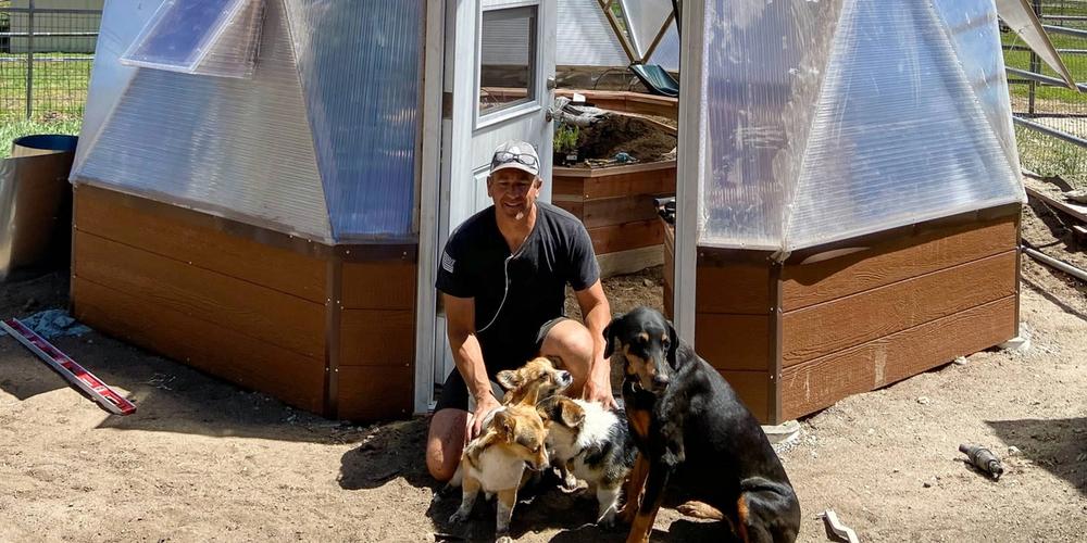 They sealed the deal in February of this year and purchased an 18′ Growing Dome. Living in Nevada allowed them to take advantage of our winter installation discount for warm climates. Plus, they earned a free solar waterfall upgrade after a friend referral. They repurposed the wood pallets that we use when shipping the greenhouse to Nevada by giving them to their neighbor to build a chicken coop. When the weather warmed up in April, they started the building process. Weldon worked on the Dome pretty much all day every day for two weeks. He completed it doing most of the work on his own with a little help from his father-in-law and Daunelle. Daunelle said, “The videos were super helpful. My husband loves new challenges, but I think having construction experience made it easier for him than it would be for most. He is handy and handsome.”