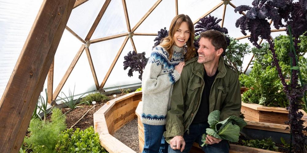 Growing Dome Owner and Oscar Winner Hilary Swank, her husband Philip Schneider, and their pack of rescue dogs were featured in Architectural Digest recently. Hilary has an incredible new home in the southwest Colorado wilderness, with a sprawling 168 acres, incredible mountain views, and a 26′ Growing Dome Greenhouse. Swank’s desire was to build a dream home that was sustainable, and blended into nature, with large-scale windows that would frame the expansive views of the mountains, and a place they could grow their own food.