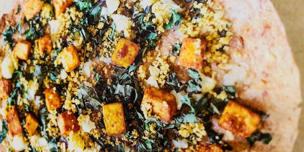 1 lb. mushrooms, your favorite 7 oz. extra firm tofu 3 tsp olive oil 4 tsp hot sauce, your favorite 1 tsp nutritional yeast 2 whole grain or sprouted tortillas 3 cloves of garlic, minced ¾ cups cauliflower ¾ cup kale, chopped into strips ¼ cup basil 1 cup cheese, your choice of vegan, plant-based, or regular (dairy) cheese Red Pepper Flakes