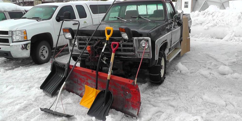 Here’s a picture of our most used gardening tools the past few weeks. An old beat up, but highly dependable, Chevy Silverado plow truck, an assortment of hand shovel and we’re going to peek into a Growing Dome® to see how it’s holding up to the wet, heavy snow we’ve been getting.